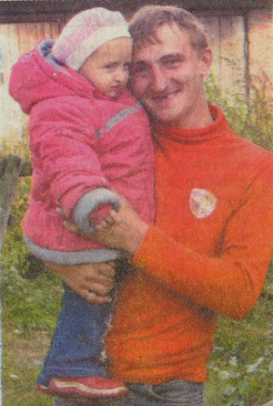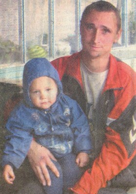 Роботи в селі немає, і Тарас поїхав до Києва на заробітки. Але попрацював недовго — зламав ногу. Того дня, коли ми завітали, повернувся на милицях додому. Сидів з приятелями на ґанку. До батькового боку тулився маленький Владик.