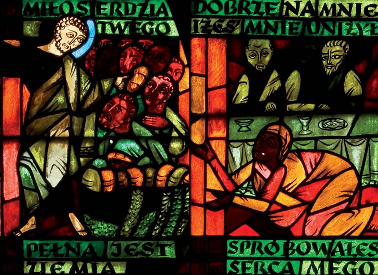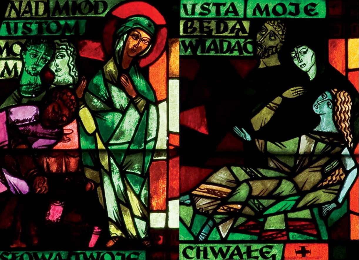 Адам Сталони-Добжанський у 1945 році виготовив свій перший вітраж в костелі святої Варвари. У 1950–1964 роках виконав комплексні вітражі костелу в Заверці, у 1953–54 роках – церкви в Городку Білостоцькому. У 1958–67 роках – вітражі ікон на хорах кафедрального костелу в Нисі.