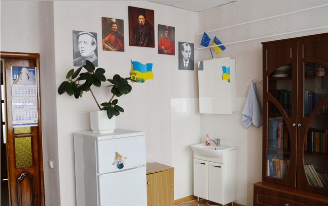 У коридорі, поблизу медсестринського посту, Валерій Гордійчук облаштував український куточок. На чільному місці — портрет Тараса Шевченка в українському рушнику, «Кобзар» і Біблія. На постаменті — справжня прядка та ціп, дві високі вази, які восени наповнять пшеницею й житом нового врожаю. У технічному приміщенні підсихають полаковані дерев’яна ступа та прач, які колись мали широке застосування у наших пращурів. Ці елементи українського побуту скоро теж з’являться в цьому куточку.