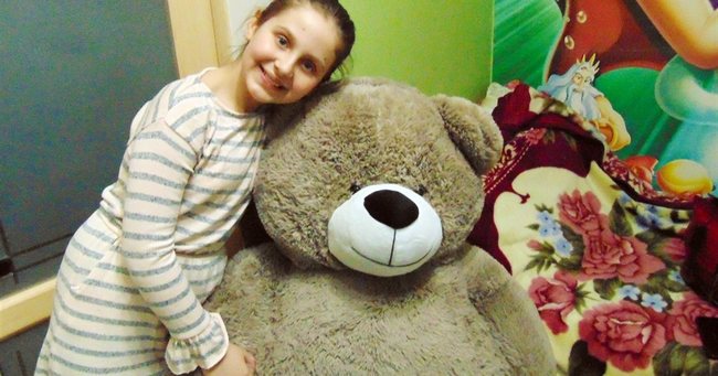 – Займає Сосулька все моє ліжко. Назвала його так, бо бачила таку велику льодяну бурульку на нашому дворі. Саджаю його в куточку, – дівчинка ледь вмощує ведмедя. – Ми подружилися: мовчить і не заважає вчити уроки.