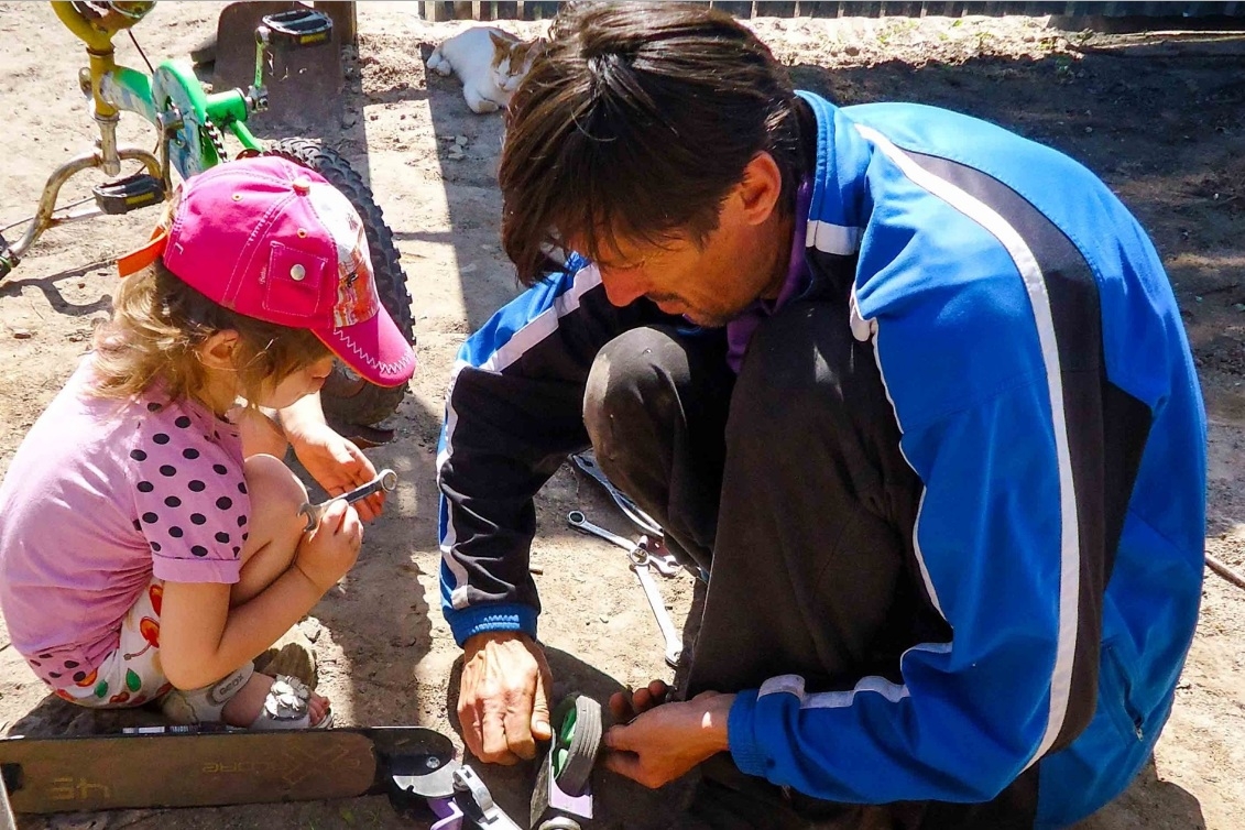 Оксана довіряє виховання доньки чоловікові. І вже не сварить їх обох за те, що борошно по всій хаті розкидане, бо вони пельмені ліплять, чи за забиті в поріг цвяхи татовою помічницею. Щасливі дитячі очі того вартують!