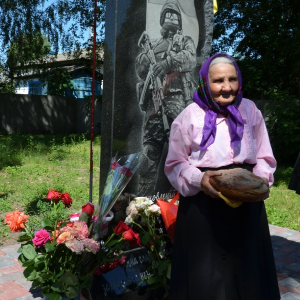 Коли у червні минулого року в Талалаївці урочисто відкривали пам’ятний знак на честь загиблих захисників України її сина Володимира Бахмача і його побратима Володимира Кунденка, Марія Михайлівна, яку синові друзі привезли на урочистості, спекла велику житню хлібину… Саме хлібом і поминає його завжди. Особливо тоді, коли до неї хлопці приїздять… На день Збройних сил зібралися гуртом і порубали їй дрова. Радісно було старенькій, бо у кожному вона бачить свого Володю, за яким не перестає боліти материнське серце.