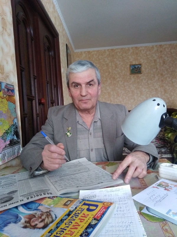 Робить це майже щовечора. Майже кожного дня він прямує в поштове відділення. Але не для того, щоб відправити лист, а купує журнали з кросвордами. Вони стали його пристрастю. Одного журналу йому вистачає на один вечір. Раніше було, що сидів пару вечорів. В основному купує призову періодику і відсилає розгадані кросворди на конкурс. Виграв настільну лампу. А в основному в якості приза редакції йому дарували тримісячну передплату на свої видання.