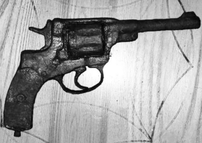 Подібну знахідку подружжю доводилося викопувати лише один раз та й то – у дуже незвичному місці. Взимку, коли земля трохи підмерзає, випадає можливість досліджувати не лише тверді ґрунти, а й болотисту місцевість. Перевіряючи місцину недалеко від монастиря, з болота вони дістали… револьвер. Залишати собі таку знахідку не стали (від зброї завжди віє неприємним, смертельним холодом) – продали за 500 гривень.
