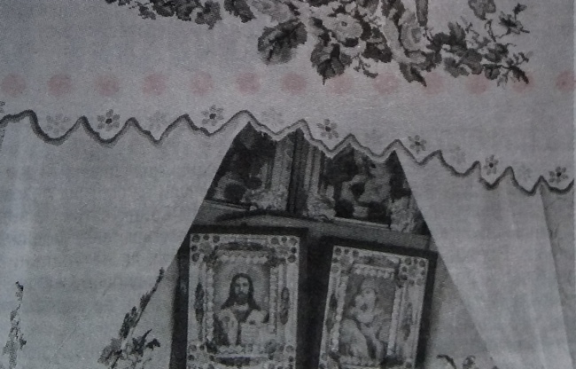 У жіночій спальні шанувальниці «Вісника» — Божа Матір, у чоловічій — Микола Чудотворець. Вишивала також сама.