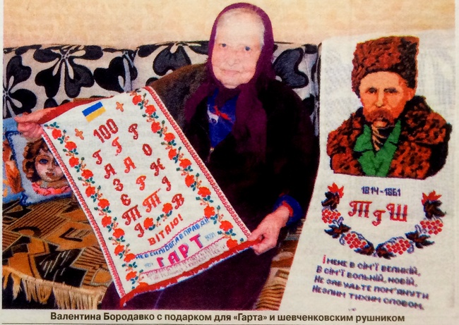 15 июня Валентине Бородавко из Нежина исполнилось 86 лет. И 60 (!) из них она выписывает «Гарт»! Признается: нашу газету обожает, поэтому, как только прочитала о предстоящем юбилее, сразу же захотела поздравить коллектив редакции. И ничего, что только вернулась из больницы, где пробыла месяц с тяжелой формой коронавируса, и сил почти не было. Уже через неделю после выписки взялась готовить нам подарок — вышивать рушник с поздравлением.