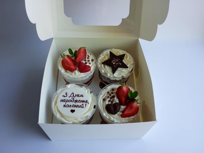 На сторінці Ольги у фейсбук читаємо про трайфл, капкейки. Що воно таке? Давайте розберемося. Трайфл - це знаменитий англійський десерт з бісквітного тіста, часто змоченого лікером або вином, з заварним кремом, фруктовим соком або желе і збитими вершками. Всі ці інгредієнти, як правило, розміщені в трайфлі пошарово. По суті, це той же торт, але в зручному порційному стаканчику. Їх можна брати з собою на природу чи прогулянку. По-друге, це гарна можливість продегустувати, перш ніж замовити такий же торт. Трайфли це смачно та гарно, вони теж, як і капкейки, прикрашаються ягодами, шоколадом, карамеллю, горішками.