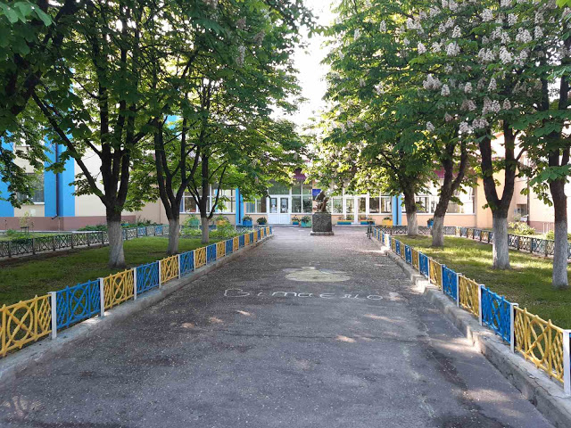 Перед школою забуяла усіма барвами і новенька клумба. А на місці, де видалили старі та аварійні плодові дерева, посадили ряд сакур, які цієї весни вперше заквітли та зібрали на території школи чимало охочих пофотографуватися та просто помилуватися цією красою.