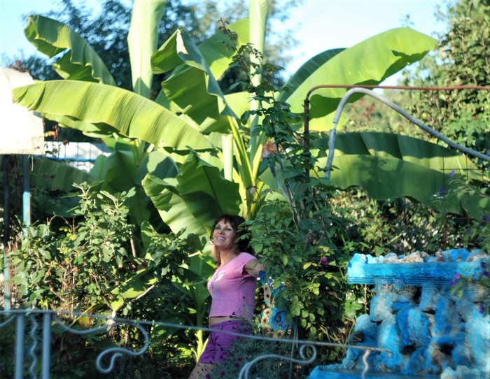 На фото - Антонина возле своего декоративного японского бананового дерева Басё