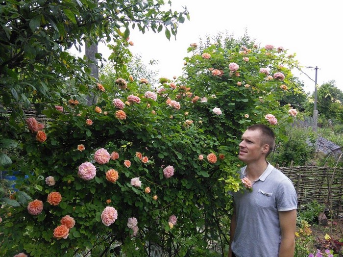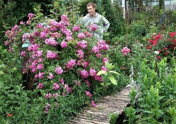 На фото средний сын Андрей рядом с сплетистыми розами, которые вырастила Антонина