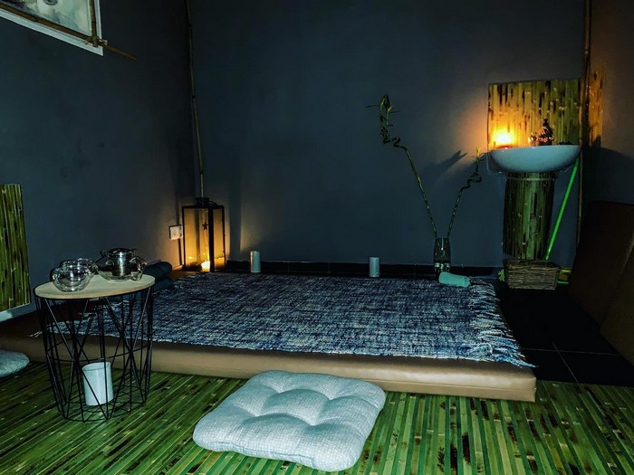 Роман предупредил, что тайский массаж делают в одежде, поэтому, переодевшись в футболку и спортивные брюки, я расположилась на подушках в уютной комнате с приглушенным светом и тихо звучащей этнической музыкой. Сначала Роман заварил травяной чай и стал рассказывать, как правильно вести себя во время массажа, чтобы получить необходимый эффект, направленный на полное расслабление, чтобы запустить восстановительные и оздоровительные процессы в организме.