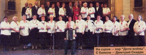 — В нашем коллективе все самородки, — говорит Валерий Пашков. — А руководитель хора Дмитрий Скидан — умный, образованный, чуткий человек, отдающий нам все свои силы, знания, опыт и выдержку, он и сам является ребенком войны. Кстати, от всего коллектива хочу поздравить Дмитрия Дмитриевича с днем рождения, который он отпраздновал 10 октября! Желаем ему здоровья, вдохновения, осуществления всех творческих замыслов, воплощать которые будем помогать и мы!