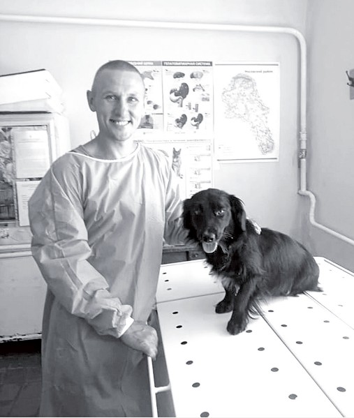 ветлікар першої категорії' Олександр Буняк зі своїм чотирилапим пацієнтом.