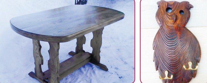 Майстер сам підбирає деревину на пилорамі, сушить матеріал, готує до роботи, шліфує, просочує спеціальним маслом.