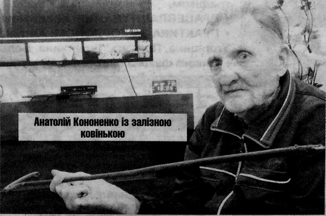 — А в мене ковінька залізна, сам зробив. Проштрикую нею лід, опираюся і не слизько. Я ж снабдитепь, як баба казала. Сьогодні за хлібом сходив, ще й поштарці допоміг. Свій «Вісник Ч» забрав і на наш куток газети порозносив.