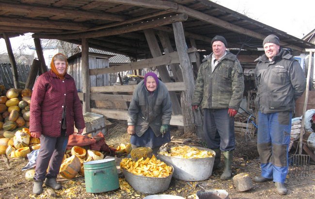 — Цього року вродило рясно, - хвалиться господарка, поки чоловіки займаються розвозкою перегною, розмовляємо із Валентиною Веніамінівною. - Садили 15 соток буряків. Міжряддя оброблялись механізовано, а ось прополкою у рядках та прориванням займалась сама вручну. А гарбузів привезли 8 великих тракторних причепів, площа була ніби всіяна, зовсім землі не видно. Тепер є робота. Щодня вибираємо насіння, теж вручну. Може, через те, що цьогоріч вродили гарбузи, то й насіння скупляють дешевше, ніж минулого року, було по 70 грн, нині по 50. Ще купуємо макуху по 9 грн.