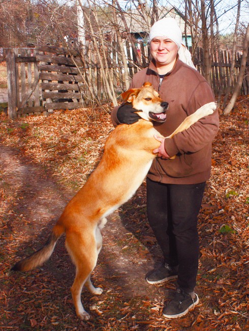 Жителька Горошківки Ірина Васильєва зі своїм псом на ймення Лис