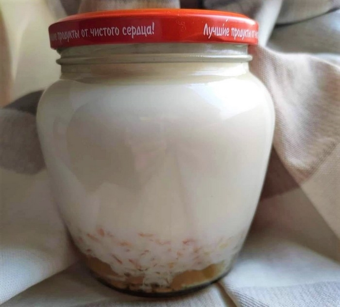 - Для ее приготовления в молоко добавляется закваска из сычужного фермента для его свертывания. На полную 3-х литровую банку молока нужно взять закваски на кончике чайной ложечки. Затем нагреть молоко до 33-35 градусов. Оно должно быть теплым, но не горячим, иначе брынза будет «резиновой». Закваску для брынзы растворить в небольшом количестве молока или воды и влить в нагретое молоко. Все тщательно перемешать, накрыть крышкой и оставить на 30-40 минут.