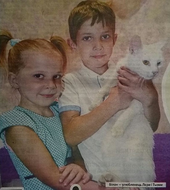 - Білану близько року. Узяли ми його в знайомих як звичайного безпородного кота. Якось я спробувала дізнатися про його, так би мовити, родовід, але там ціла суміш різних порід: і сіамці, і перси. Єдине - бабуся Білана колись також привела біле кошеня з очима різного кольору, а так усі родичі в нього звичайні. Приніс Білана додому чоловік, хоч я була впевнена, що жодного кота в нас більше не буде... РІіч у тому, що до цього в нас жила кішка Бетта - британка. Діти (а в родині Гриненків іх троє - 14-річний Даня, 7-річнии Тьома та 5-річна Лєра. - Авт.) дуже просили котика, ось ми її і взяли.