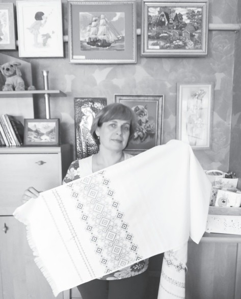 Ніна Володимирівна народилась у Синютині. Сім’я була велика. Мама всім шила обновки і замовлення брала, щоб грошенят підзаробити. Навчила всьому і Ніну, яка закінчила інститут у Херсоні і стала вчителем трудового навчання. З 1999 року працює у Сосницькому реабілітаційному центрі (колись школа-інтернат). Своїх дітей вона вчить неабиякій майстерності. Навіть влітку, коли багато городніх справ,вона береться за вишивку. Ось-ось буде готовий вишитий рушник (на фото).