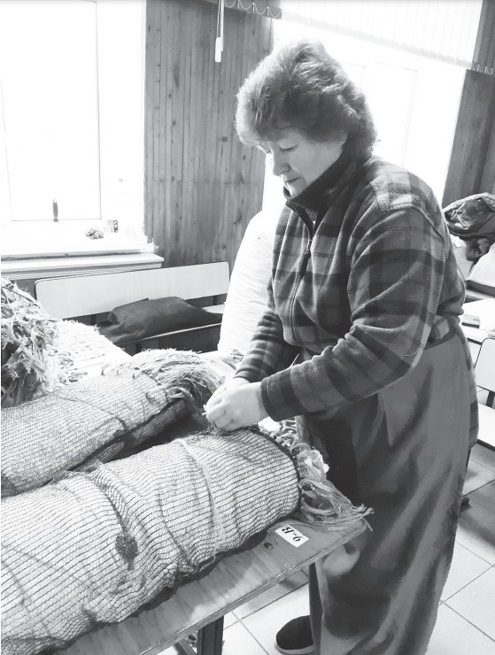 На фото Любов Правдивець за роботою; хлопці на передовій дуже раді сіткам з Прилук