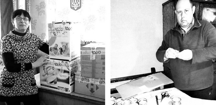 — Робітник із благоустрою Анатолій Ткаченко готує баночки, обрізає, накручує картон. інколи баночки ще треба і помити, — розповідає Лідія Борисівна, — Багато людей приєднались до збору баночок по всіх селах. Особисто не буду нікого називати, бо, мабуть, немає таких людей, хто б нам чимось не допоміг. Навіть із Києва земляки надіслали сім ящиків баночок. Наш діловод Богдан Максименко робить ґноти для свічок, а також виготовляє розпалювачі — нарізає на квадратики картон, який тонкий і не підходить для свічок, замочує його у парафіні. Таким розпальничком можна розпалити в пічці, чи багаття. Час горіння запальничка до 5 хвилин. Я заливаю заготовки парафіном, потім пакуємо в ящики.