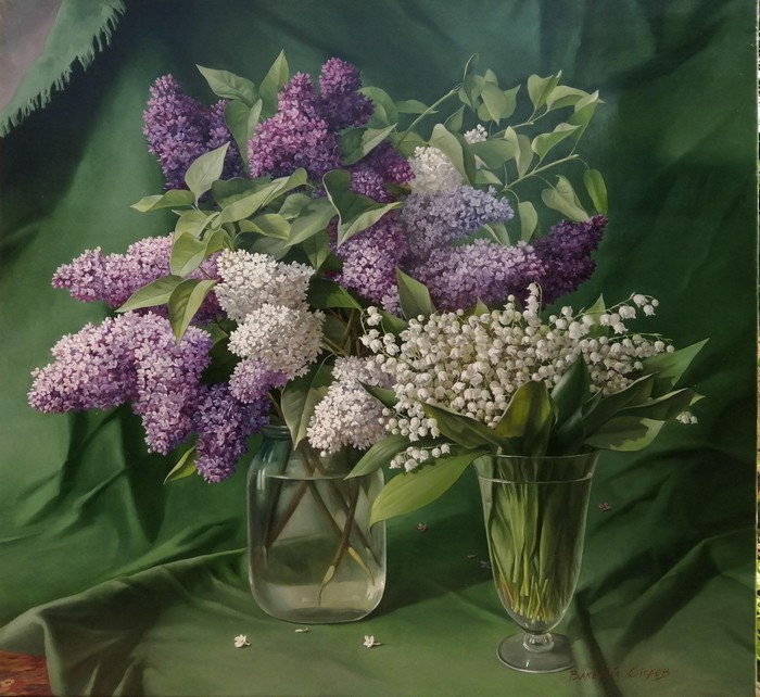Проте, все-таки найчастіше закордонні поціновувачі таланту Валерія Сігаєва замовляли полотна із квітами: конвалії, бузок, ромашки, піони, калину, айстри... На них вибух кольорів, а квіти - соковиті, об’ємні, здається, що живі.