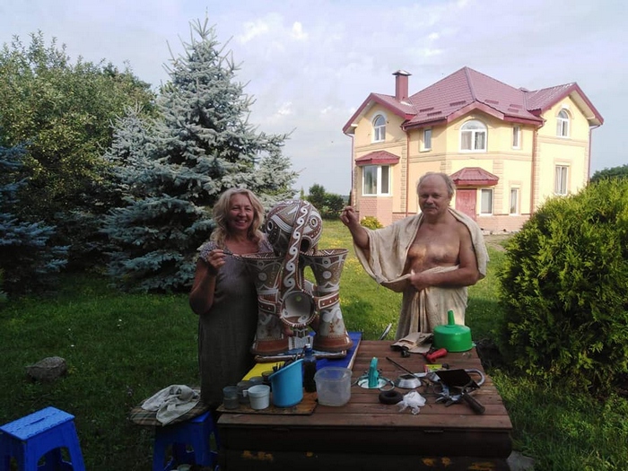 Йдемо звивистою доріжкою, вимощеною бруківкою, серед декоративних дерев і кущів, і несподівано на галявині виринає двоповерховий будинок. Красивий, немов з казки братів Грімм. У ньому подружжя живе.