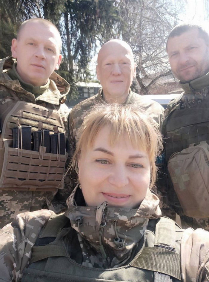 Оборонці Чернігова Сергій Нагорний, Ірина Мороз, Олег Гуменний і Юрій Тимченко, березень 2022 р.