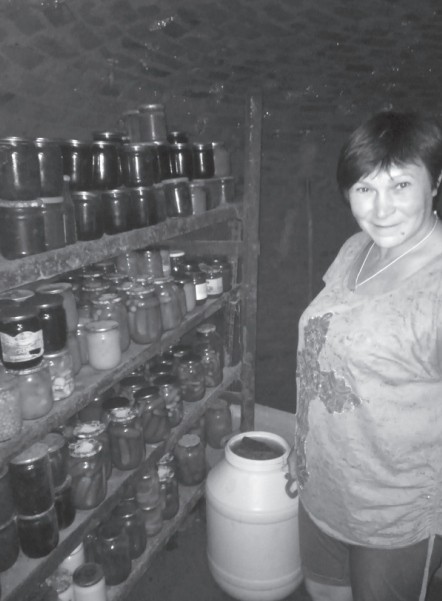 У родині люблять мамині заготовки, а для неї - це в радість. Вона намагається всього закрити. Відра, бочки, банки - все наповнене. Вже заповнені стелажі у погребі. А на підлозі - 5-літрові відерці квашених помідорів, в око впадає 60-літрова бочка та 40-літрова, в них квасяться помідори і огірки. У 3-літрових банках компоти: абрикоси, малина, яблука; у 1,5-літрових помідори, у 1-літрових огірки за різними рецептами. А ще багато салатів, кетчуп, кабачкова ікра, горошок зелений, гриби, джеми. До речі, джеми з малини люблять, щоб він був без кісточок. Тому господиня видавлює сік із ягід, попередньо приварює, додає цукор із розрахунку 1 кг ягід, 1 кг цукру, закипить 15-20 хв і розливає у банки під металеві кришки.