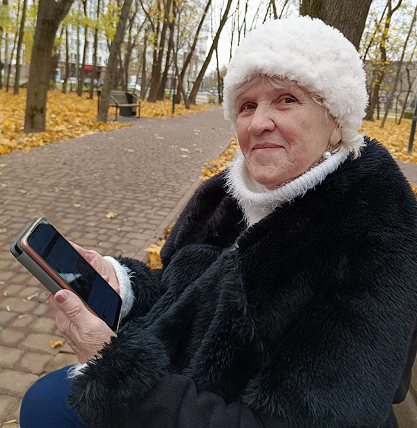 Добре володіє смартфоном. Не боїться, як то кажуть, щось наклацати, не те натиснути. А вдосконалила навички в чернігівському терцентрі на Левка Лук’яненка. Тобто в Чернігівському міському територіальному центрі соціального обслуговування (надання соціальних послуг) Чернігівської міської ради. Ходить у терцентр понад вісім років.