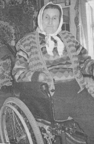 А як стала, щитай, зовсім безрукою, уся робота лягла на Валю. Марія закінчила Харківський фармацевтичний інститут і з вісімдесят першого року живе з сім'єю в Кременчуці. Син окремо жив, а Валя з нами. Усе на ній — і ми з батьком, і хазяйство, і город. Родичі чоловікові помагали. Коля мій, син, рано помер, у сорок п'ять літ. Ліг спать і не проснувся. Таке горе для матері, що й подумать страшно. Не дай Бог хоронить своїх дітей. Його син Володя закінчив Ніжинський університет по історії, 10 жовтня пішов в армію. А де служить, не знаю. Пробувала дзвонить по телефону — не получається.