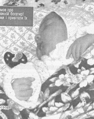З'явився він на світ о 16:10, обійшлося без кесаревого розтину. Казали, плечі широкі, а все інше не більше, ніж належить. Мовчки народила. Тепер же діток зразу кладуть до мам. Синочок мій спочатку не хотів ссати, а потім так і прилип... Цей у нас чорненький, як і Діма. А губки у нього, як у Даші, таткові. Ротик маленький.