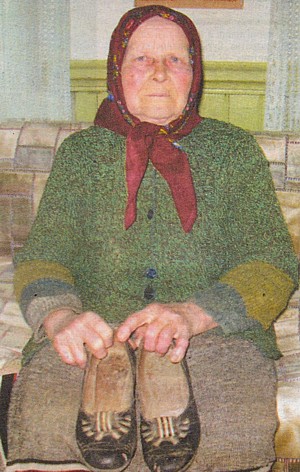Старенька підводиться. Ой, зігнуло Єгорівну життя... Каже, недавно, років зо три. Шорхається під ліжком.