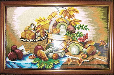 Бібліотекар натякає мені, що це ж дружина голови районної ради, а вишивати не лінується. А мені подумалось: «І як умовили скромну й трудящу Ольгу Іванівну вишивання своє напоказ виставити?!». Відчуваю, мабуть, просто пожаліла тих, хто вмовляв. Хрестик дрібненький і кольори соковиті. Соняшники і звичайні квіти - гарніші за тих, які нам літаками за тридев'ять земель привозять. І тваринний світ у неї добрий...