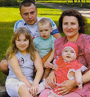 Елена Конечная с зятем Александром, младшей дочерью Галей и внучатами Алешей и Леночкой на прогулке