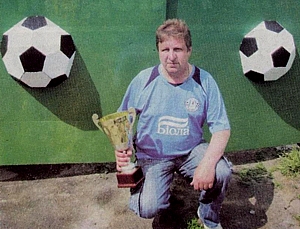 Володимир Бабкін біля своїх «футбольних» воріт