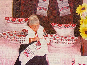 - Я ее вышила несколько лет назад, — сказала Надежда Петровна, поймав мой восхищенный взгляд. — В апреле закончила вышивать новую, но швея еще не сшила ее. Крою я их сама. А затем на тех на лоскутках вышиваю только черными и красными нитками, потому что именно эти цвета присущи украинским вышиванкам и рушникам. Когда узор готов, сметываю и отдаю швее. Одно плохо: в последнее время я стала вышивать медленнее. За зиму, например, успела вышить только четыре мужских сорочки. Одну — известному в Украине и за рубежом черниговскому кобзарю Василию Нечепе, вторую — студенту из консерватории, еще одну - председателю черниговской ветеранской организации, а четвертую — парню, который мечтал о вышиванке с полесскими узорами. Вышивать меня научила старшая сестра Оля (у меня еще был брат Миша и сестра Люба, но они уже умерли), которая сейчас живет в Ксаверовке Васильковского района Киевской области.