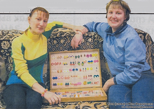- Вот в Киеве другое дело - там выбор большой, но и цены «космические». Мы с Таней живем фактически в Нежине (Юля учится в Нежинском педагогическом университете имени Николая Гоголя, Таня преподает в Нежинском лицее. - Авт.), а этот город все-таки недалеко от Киева, поэтому большинство достижений столицы доходят и сюда. Вот нам одна подруга и показала, как делаются украшения из термопластика. Заинтересовались и сами попробовали, понравилось. В Мене как раз должна была состояться Троицкая ярмарка, мы и решили поехать на нее со своими изделиями. А потом пошло-поехало. За лето мы объездили почти всю область - торговали в Нежине, Мене, Коропе, Соснице, Борзне, Прилуках, Новгороде-Северском. Даже если у кого-то тоже такой товар (а это было только на ярмарке в Нежине), то наши изделия абсолютно не похожи, ведь у каждого своя фантазия.