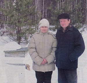 Валентина та Василь Шуриги. За ними пасіка. І ліс
