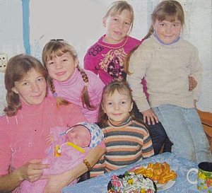 — Першою народилась Мирослава, їй зараз дев'ять років. її назвав чоловік, це ім'я йому подобалось. Друга — Катя, сім років. її назвала я, завжди хотіла дочку Катюшу. Тані шість, вона народилась перед днем Тетяни, 23 січня. Коли народилась четверта дівчинка, я і Сергій написали ім'я, яким би хотіли назвати донечку, і вкинули в коробочку. А Мирослава, старша, дістала папірець. Там було ім'я Святослава. Подивились і другий клаптик, а там те ж саме написано. Значить, сам Бог велів її назвати Святославою.