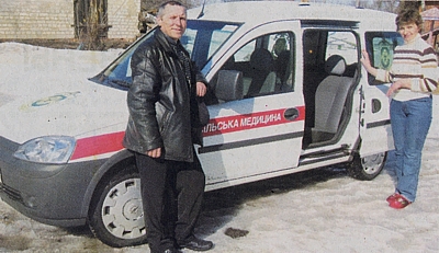 Водій Анатолій Кисіль та акушерка Світлана Войтик біля "Опеля"