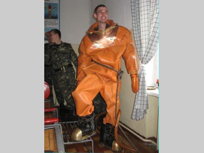 Дійсно, характер, темперамент і насамперед відмінне здоров’я людини є основними критеріями відбору на водолаза. У центрі їх вчать працювати в різних спорядженнях. Вага найважчого становить 80 кілограмів. Сюди входять шолом – 30 кілограмів, боти – 21 кілограм, та грузи, які чіпляють на спину і груди – по 16 кілограмів кожен.