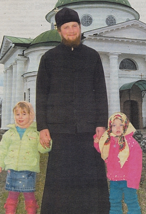 Отец Владимир с дочками - Лизой (слева) и Настей