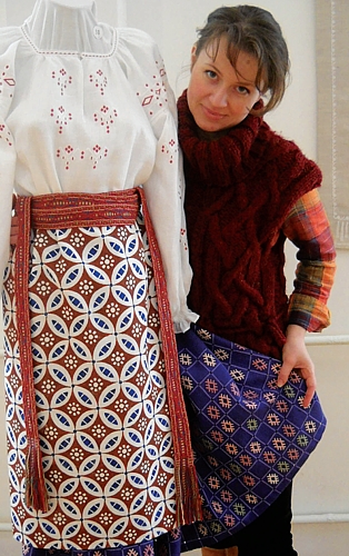 – Традиційний одяг замовляє дуже обмежене коло людей, наприклад, колекціонери та ті, хто цікавиться реконструкцією. Стилізований одяг замовляють частіше, адже людям хочеться мати такі речі в своєму гардеробі – їх можна вдягати щодня, причому як в офіс, так і на вечірку, святкування. Нещодавно на виставці в Художньому музеї я представляла готові комплекти традиційного святкового жіночого й чоловічого одягу саме Чернігівського регіону. Я відштовхувалася від тих речей, які зберігаються в фондах нашого історичного музею. Використовувала традиційний крій, всі з’єднання окремих частин – також традиційні за допомогою різних видів змережувань. Щиро кажучи, мені завжди подобалося й подобається одягати людей. Тому українські строї у мене «вилітають» один за одним. Пояси до костюмів я тчу також сама, орнамент тут утворюється за рахунок ниток основи, а в гобелені — навпаки.