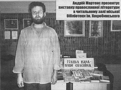 На духовні потреби чернігівців відреагували як небайдужі громадяни, так і самі парафіяни, - власне, на їх пожертви й була придбана просвітницька література. А пан Андрій охоче взяв на себе організаційні клопоти. Так,, у червні цього року почала працювати виставка православної духовної літератури в читальному залі бібліотеки імені Коцюбинського. Зараз вона має статус постійно діючої, але у перспективі має перерости в цілий сектор бібліотечного фонду. До найближчих планів входить і організація недільної школи із залученням кращих проповідників православ'я в Чернігові. А пані Галина взяла на себе зобов'язання всебічно сприяти цьому процесу.
