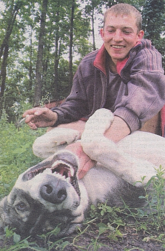 Сергій Грається з 8-місячним метисом кавказької та середньоазіатської вівчарки і вовка