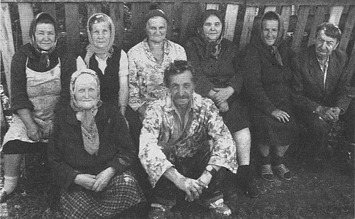На лавочці: Марія Козел, Ганна Волевач, Марія Дерюга, Надія Макаренко, Любов Головач, Михайло Волевач.