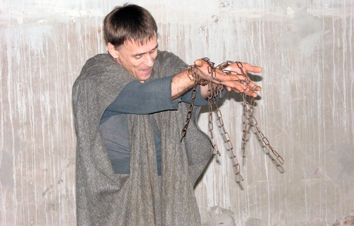 — На це робилася ставка. Ні за що сховатися, голий бетон. І ти весь як на долоні. А недобудоване крило художнього музею, де грався спектакль, в структурі спектаклю — чи то храм, що рушиться, чи то храм, де починається відродження. І в цьому просторі, на бетоні, все і трапилося...