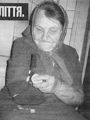 Я все на світі навчилася робить однією рукою. Копаю грядки, саджу городину, полю. Перу дрібні речі, шию, вишиваю. Печу пиріжки, паски, ліплю вареники. Варю усяку страву. Та все роблю. Не можу витягти з колодязя води зимою і ножиці в лівій руці не ріжуть. Картошку спочатку чистила, затиснувши ніж між колінами, а тепер вставляю його під праву руку — і чищу. Бачите, як швидко і гарно це роблю. Нігті на лівій руці теж так обрізаю.